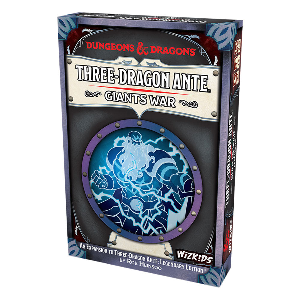Lang geleden vochten draken en reuzen een duizendjarige oorlog en herdenkingen de menselijke overlevenden door de gevechten door de Giants toe te voegen aan hun High Stakes Card Game of Luck and Skill, Three Dragon Ante! Met meer dan 100 nieuwe kaarten Three Dragon Ante: Giants War voegt een hele nieuwe manier toe om het Classic Dungeons & Dragons Standalone Card Game te spelen! Je mengt nieuwe gigantische pakken, terwijl je de inzet in twee splitst: de Dragon Stakes en de Giants Stakes. Spelers vechten voor de inzet waar hun vlucht het sterkst is, waardoor je nieuwe routes naar de overwinning krijgt! Er is ook een nieuwe manier om legendarische draken en de nieuwe gigantische goden te vinden. Nieuwe krachten laten spelers krachtige kaarten uit het legendarische deck halen!