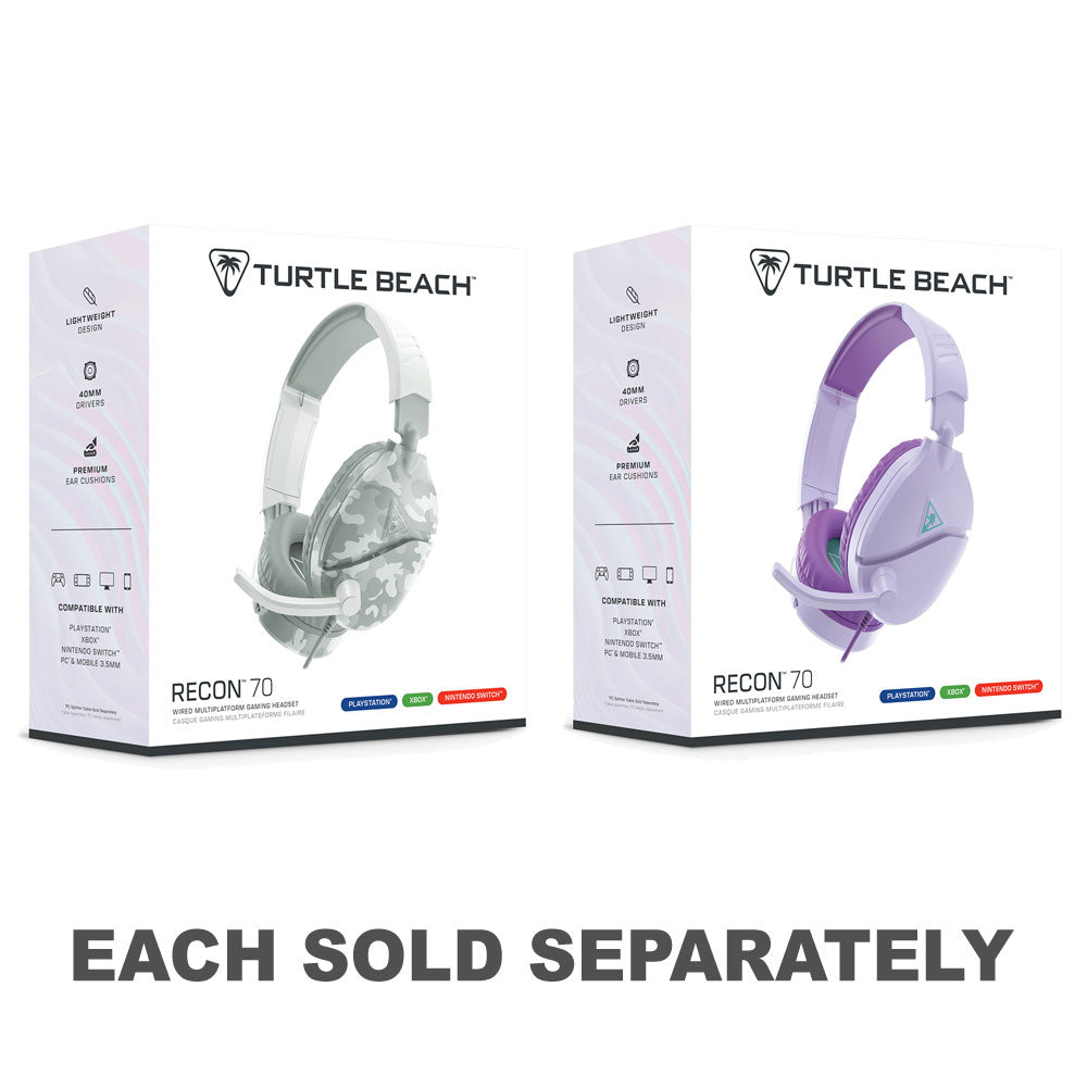 Built for your next victory, your latest achievement and much more is the Turtle Beach® Recon 70 multiplatform gaming headset. Featuring Turtle Beach’s latest lightweight and comfortable headset design for hours of play, with high-quality 40mm speakers and over-ear premium synthetic leather cushions that let you hear every crisp high and thundering low while blocking noise. Plus, for even more immersive audio, the Recon 70 supports spatial sound technologies like Sony 3D Audio for PS5™, Windows Sonic, Dolby Atmos, and DTS Headphone: X*. Turtle Beach’s renowned high-sensitivity mic to ensure you are heard clearly and easily flips up to mute. Finally, the versatile 3.5mm connection makes it perfect for swapping between PlayStation® and Xbox controllers, Nintendo Switch™, and PCs & mobile devices with 3.5mm connection. (125)