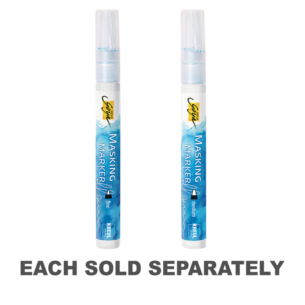 The Solo Goya Masking Marker Fine works like a regular pump action marker, except that it dispenses masking fluid!
