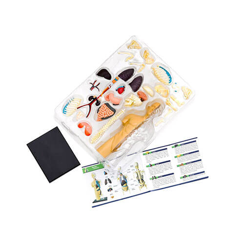 Menselijke anatomie is het gedeelte van de biologie met betrekking tot de structuur van het menselijk lichaam. Met deze kit kunt u het menselijk lichaam verkennen en leren door uw eigen mannelijke romp te verzamelen. Elk stuk van het skelet en de organen past in elkaar als een puzzel, zodat je het menselijke frame en de organen erin kunt begrijpen, inclusief de hersenen, skelet-, spijsverterings- en cardiovasculaire systemen.