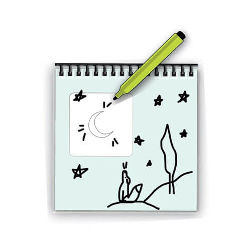 • Na het beëindigen van de tekening toont de lade alleen het transparante papier aan anderen, en de andere spelers moeten raden wat er op het transparante papier ontbreekt.