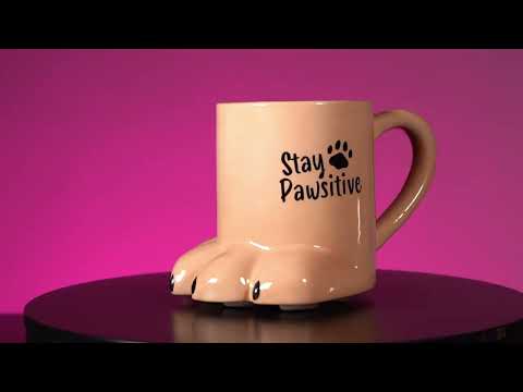 Bedårende 3D -krus formet som en kattes pote. Purr-fect til kattelskeren i dit liv! Med grå accenter og en punny sætning, der lyder 'Stay Pawsitive'.