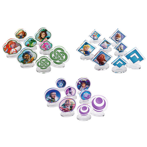 Der vil være 6 sæt standees tilgængelige, et for hver af de seks fraktioner i spillet. Hvert sæt inkluderer 3 heltfigurer og 3 ledsagerfigurer - hver helt og ledsager fra spillets første sæt er repræsenteret! Hvert sæt har også en unik designet form til sine tal, hvilket gør det nemt at skelne mellem helte og ledsagere fra forskellige fraktioner.