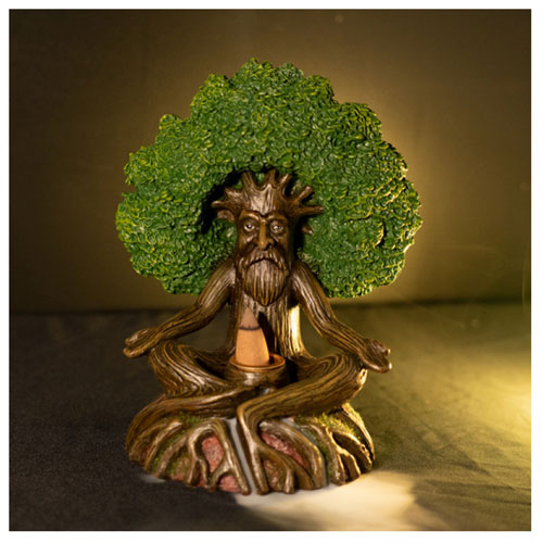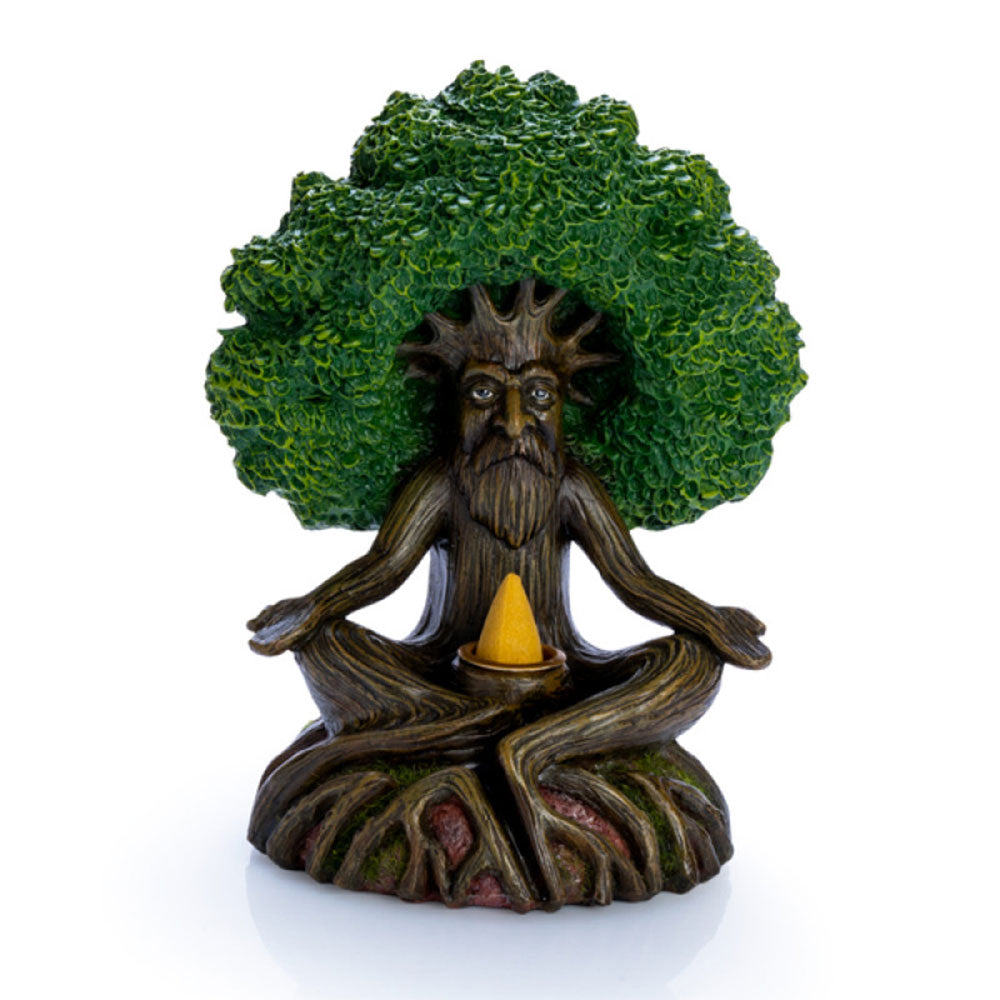 Magisk tilbagestrømning røgelse brænder med et mediterende gammelt træ. Placer en tændt røgelseskegle i træets skød, og se røgstrømmen ud gennem dens rødder. Velegnet til røgelseskegler.