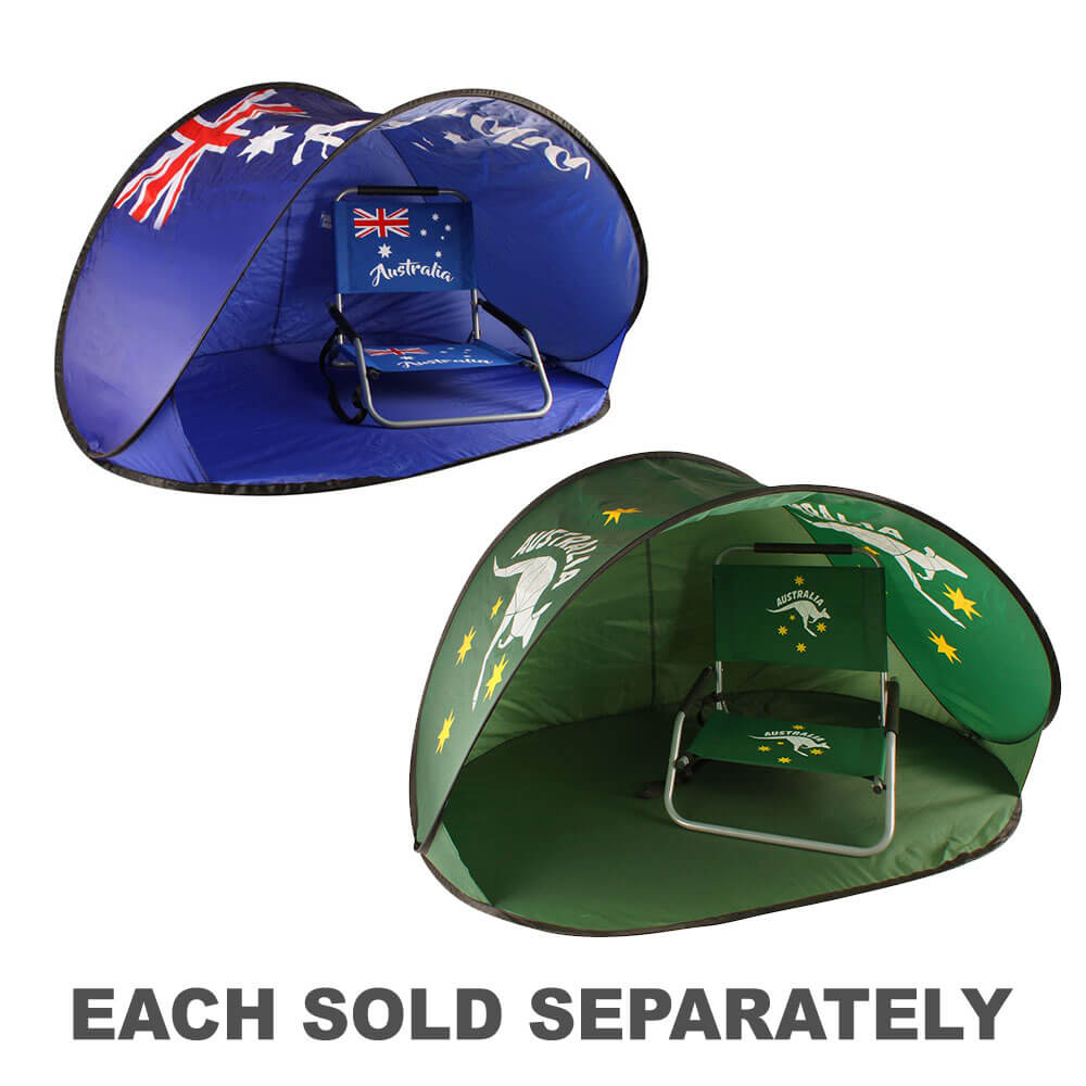 Gør dig selv behagelig og ikke for udsat i den lyse sol med denne sammenklappelige solskærm. Designet med grønt og guldflag-tema vil dette være dejligt at fejre Australien dag og flagre det på stranden!