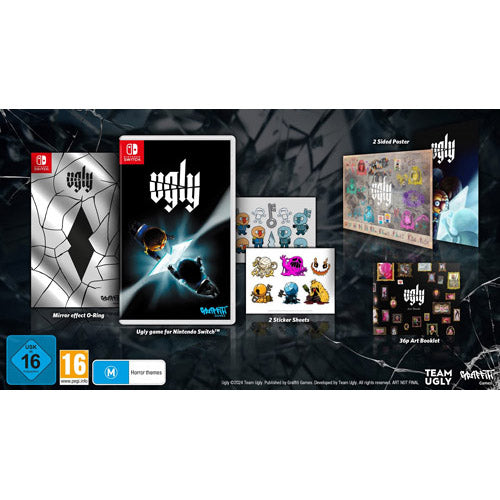 • Den fysiske udgave inkluderer: Det fysiske spil, 2 klistermærkeark, en 36-siders kunstbog, en spejl-effekt O-ring og en fantastisk plakat.