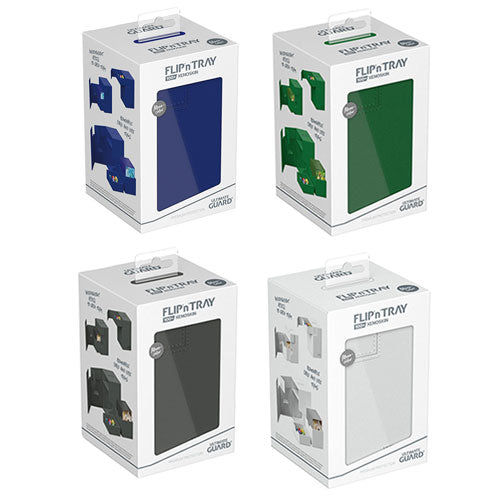 Den fremtrædende ultimative vagtdækboks: Et tidløst monokoloreret design med stærk magnetisk lukning, kort- og terningerbakker til sikker opbevaring af dit dæk og en resistent, men glat Xenoskin -overflade. Leder du efter yderligere sikkerhed? Med plads til 100 dobbeltærmet eller 120 enkelt-ærmer kort i standardstørrelse har flip'n'tray 100+ det hele.