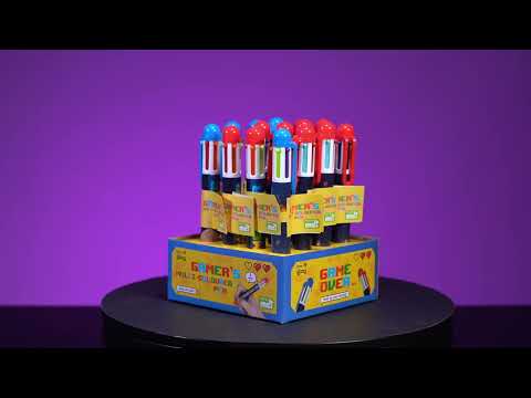 Verbessern Sie Ihr Schreiben mit diesem neuartigen Gamer-Stift! Verfügt über Pixelsymbole mit dem Text „Game Over“. Mit 6 Farben zum Schreiben: Schwarz, Blau, Rot, Orange, Grün, Lila.