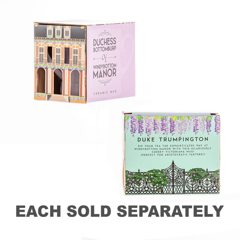Alle furzen – sogar Herzöge und Herzoginnen! Diese urkomische, neuartige „Duke Trumpington“-Victoriana-Tasse ist komplett mit dem lustigen Text „Duke Trumpington of Windybottom Manor“ versehen und eignet sich hervorragend, um jemandem seinen offiziellen *stinkenden* Titel zu verleihen! Gedruckt auf einer wunderschönen blauen Tasse und präsentiert in einer hochwertigen, grafischen, dekorativen Geschenkbox. Diese Tasse mit lustigem Zitat ist das perfekte Geschenk für ihn zum Geburtstag oder zu Weihnachten und stellt ihn offiziell in das Haus Trumpington vor (zu Recht)!