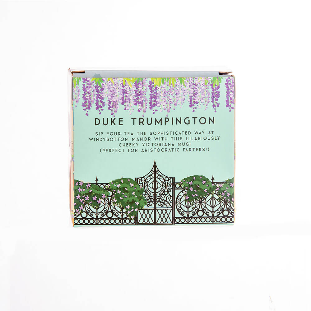 - Tut mir leid, Sir...Was ist das für ein Geruch? - Auf dieser urkomischen pastellblauen „Duke Trumpington“ Victoriana-Tasse steht der urkomische Text „Duke Trumpington of Windybottom Manor“!