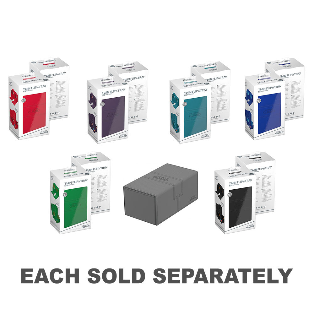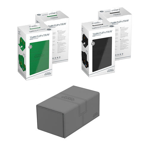 One box, two card decks, and additional accessory tray: Our Twin Flip'n'Tray 200+ offers all the features a great deck box needs. Doubling the size of our classic Flip'n'Tray 100+, this box is the big sibling everyone is looking for. The Twin Flip'n'Tray 200+ can hold 200 double-sleeved or 240 single-sleeved standard sized cards*.