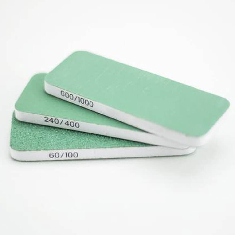 Die Flexi-Schleifer sind ein 3er-Set und sind waschbar und wiederverwendbar. Sie bieten die folgenden Sortenkombinationen an: Grob (60/100): Effektiver Materialabtrag. Mittel (240/400): Verblenden und Glätten. Fein (600/1000): Endbearbeitung und Polieren.