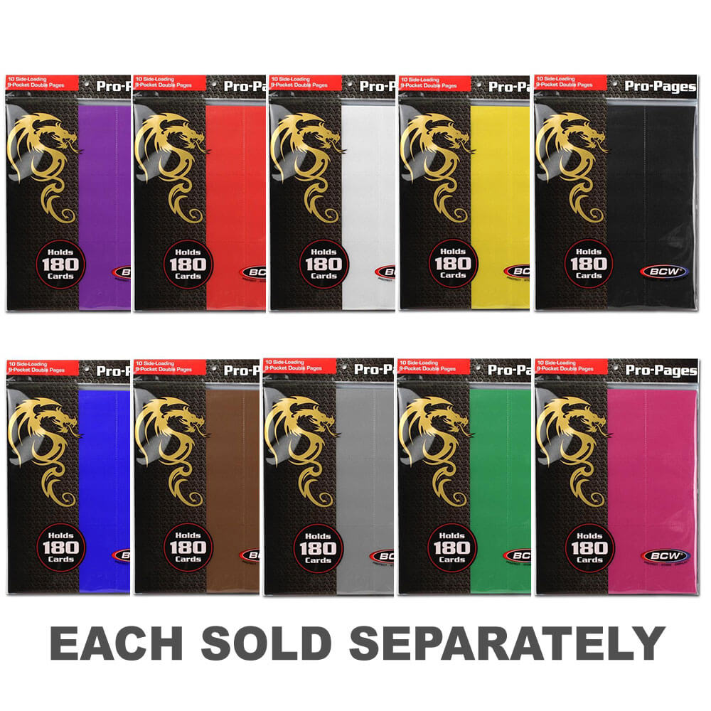 Now you can color coordinate and index your Magic: The Gathering, Pokemon, and YuGiOh cards within your binder! The BCW Pro18S pages will accommodate 18 cards and features side-loading pockets to deter the cards from sliding out of place. Our premium, double-sided, archival safe polypropylene pages will not harm the cards stored within and offer an attractive method to both store and display your collectibles.