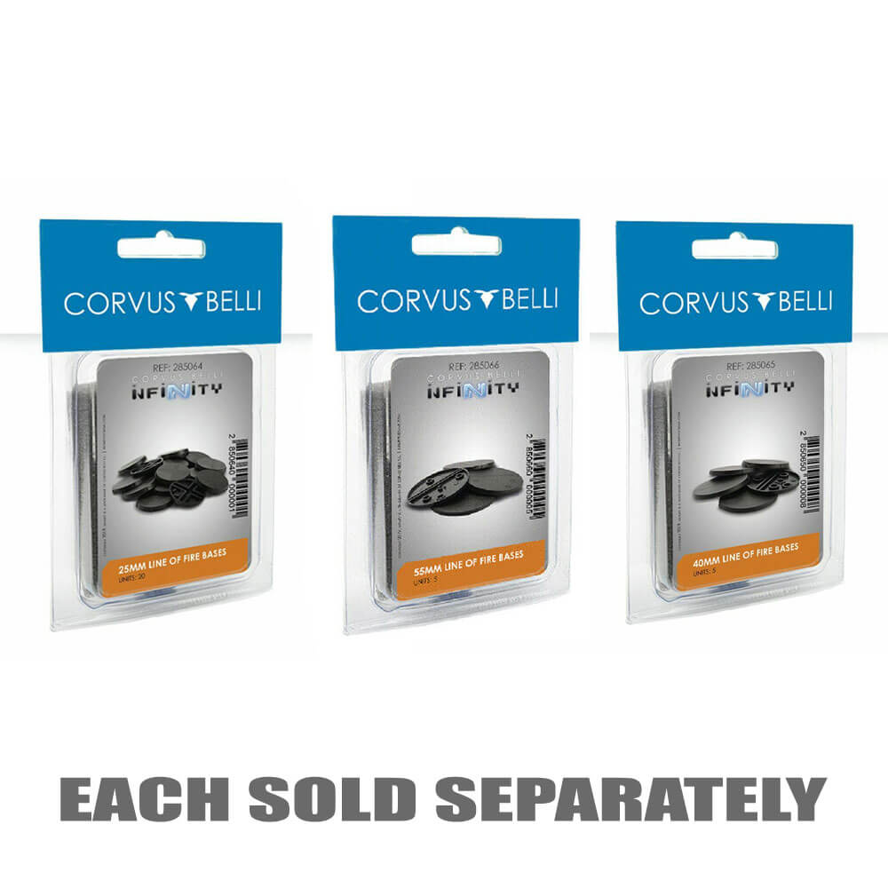 • Pack of 20 25mm bases. Designed exclusively for Infinity miniatures, with Line of Fire markings displayed on the base.
