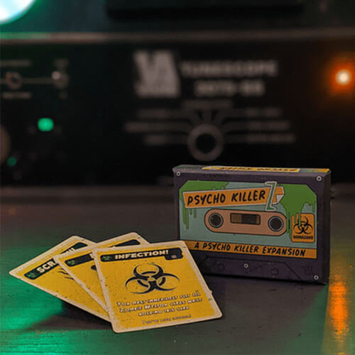 It is a game within your game of Psycho Killer. There are two infections in the deck, and if you pick them up, you are susceptible to zombie attacks. You will want to palm off the infection to your friends as soon as possible if you wish to survive!