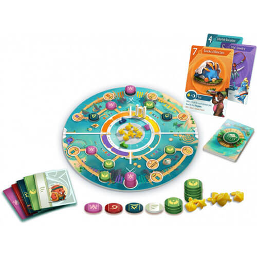Each turn, aim to play the highest, mid, or lowest Merchandise card to unlock different actions.