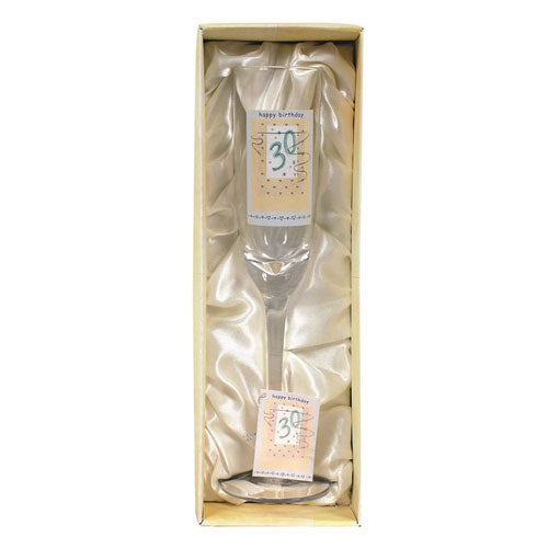 - Celebrate the big 3-0 in style with this cheerful flute that adds a touch of elegance to any birthday party.