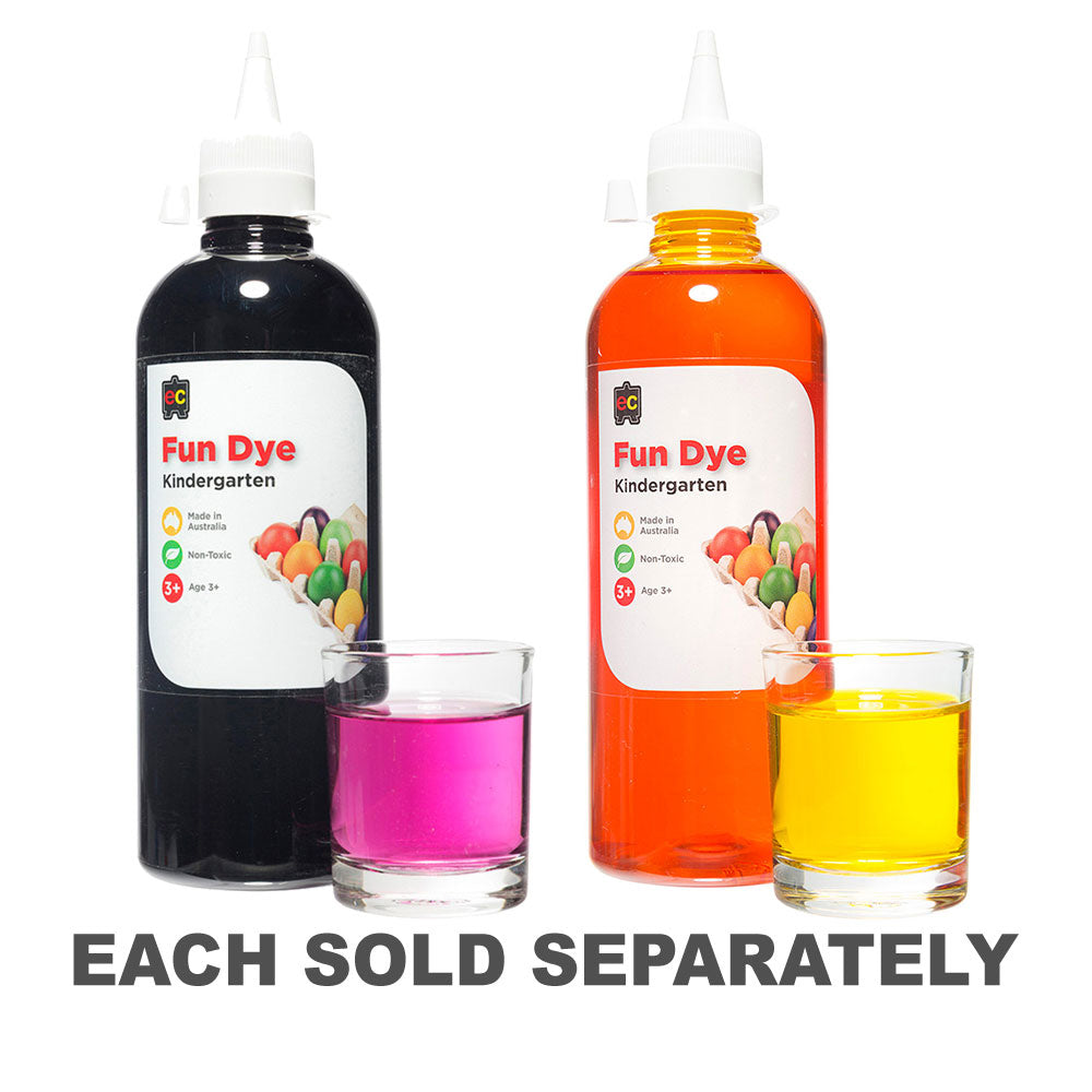 Introducing Kindergarten Fun Dye in a convenient 500ml bottle - a vibrant and hassle-free solution for all your artistic endeavours. Proudly made in Australia, this non-toxic dye is pre-mixed and ready to roll, eliminating the need for any prior preparations.