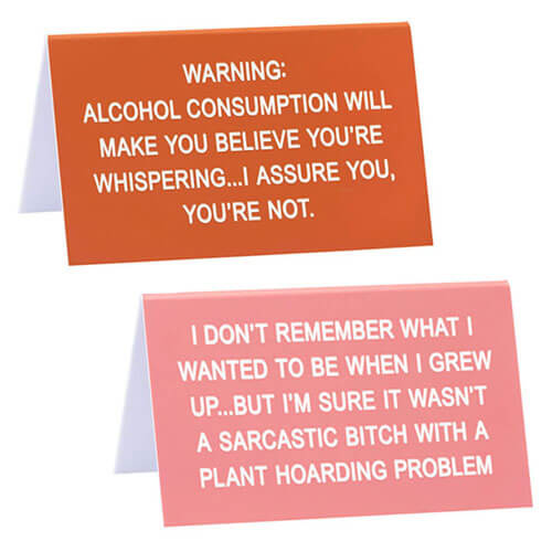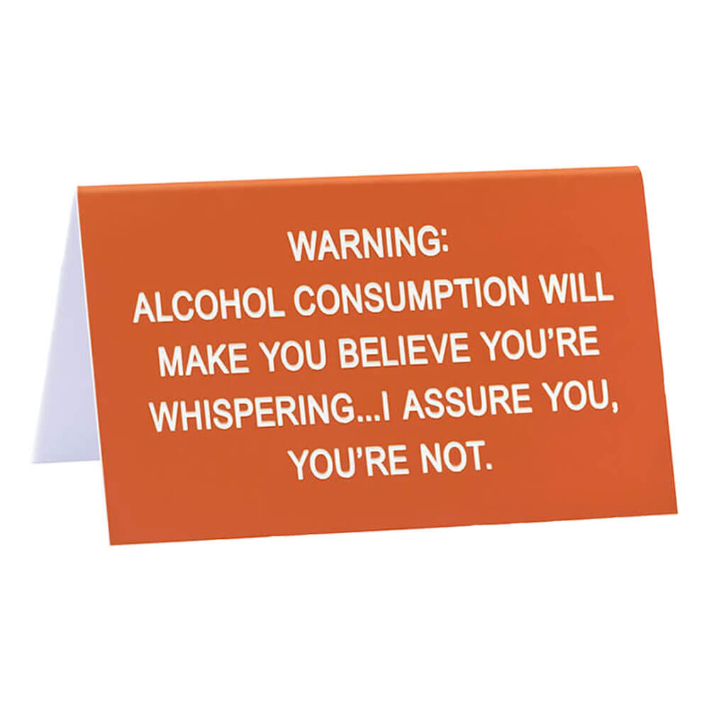 Breek de monotonie van het werk en breng wat LOL's naar het kantoor met dit geestige bureauteken van zeggen wat?. Bijschrift luidt: 'WAARSCHUWING: Alcoholgebruik zal je doen geloven dat je fluistert ... Ik verzeker je, je bent niet'.