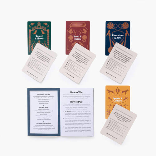 • Cependant, les cartes fonctionnent aussi bien que les démarreurs de conversation affichés pendant l'heure du cocktail.