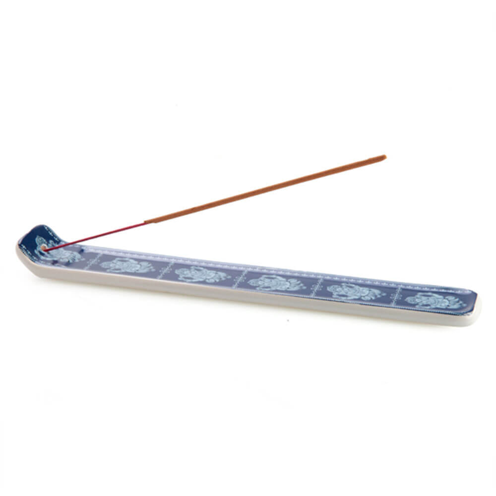 Brûleur d'encens blanc et bleu avec la divinité hindoue, Ganesha. Fabriqué à partir de céramique de qualité