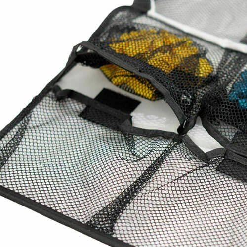 - 16 poches d'attache à crochet et boucle en filet et 16 sacs à fermeture à glissière assortis.