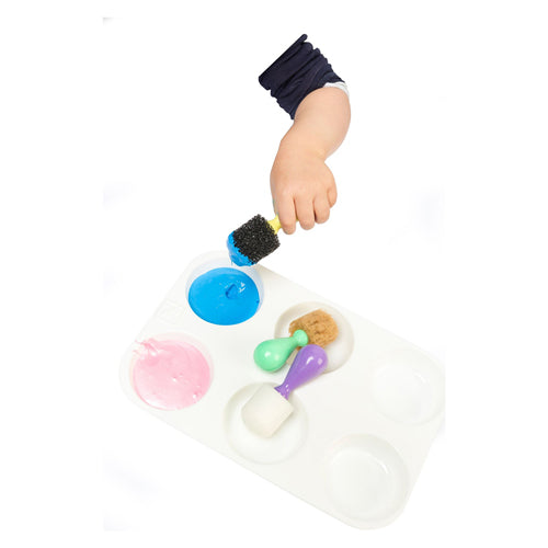 Each set includes three different texture brushes, offering a range of tactile experiences and allowing for varied painting effects. Whether used for bold strokes, detailed patterns, or imaginative scenes, these brushes help young children explore their creativity while developing their fine motor skills.