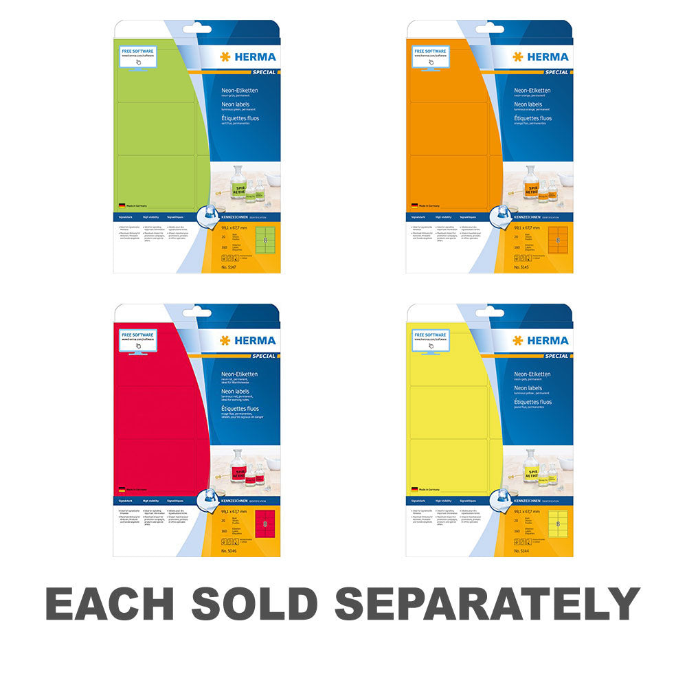 Herma Luminous Neon Labels A4 20pc (99.1x67.7mm)