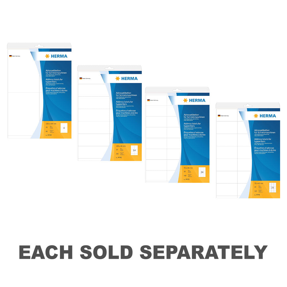 Embrace retro style with Herma Typewriter Address Labels! This pack includes 20 A4-sized labels designed specifically for typewriters, adding a touch of nostalgia to your labeling tasks. With a white finish for clear, professional-looking prints, these typewriter labels offer convenience and vintage charm for address labels, shipping labels, or organizational tasks. Whether for personal correspondence or decorative projects, these Herma labels bring a classic touch to your labeling endeavors. Get ready to channel the elegance of yesteryear with Herma Typewriter Address Labels!