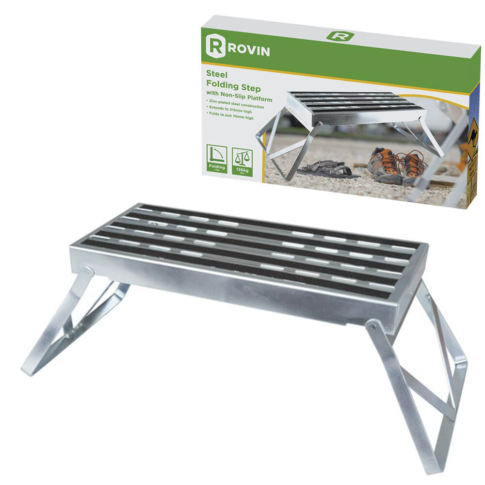 このステップは、ヘビーデューティーアルミニウムから作られており、足が滑るのを止めるための非スキッドプラットフォームがあります。ステップは、拡張時に220mmの高さで、保管スペースを減らすために使用されていない場合はわずか70mmに折りたたまれます。最大136kgをサポートします。