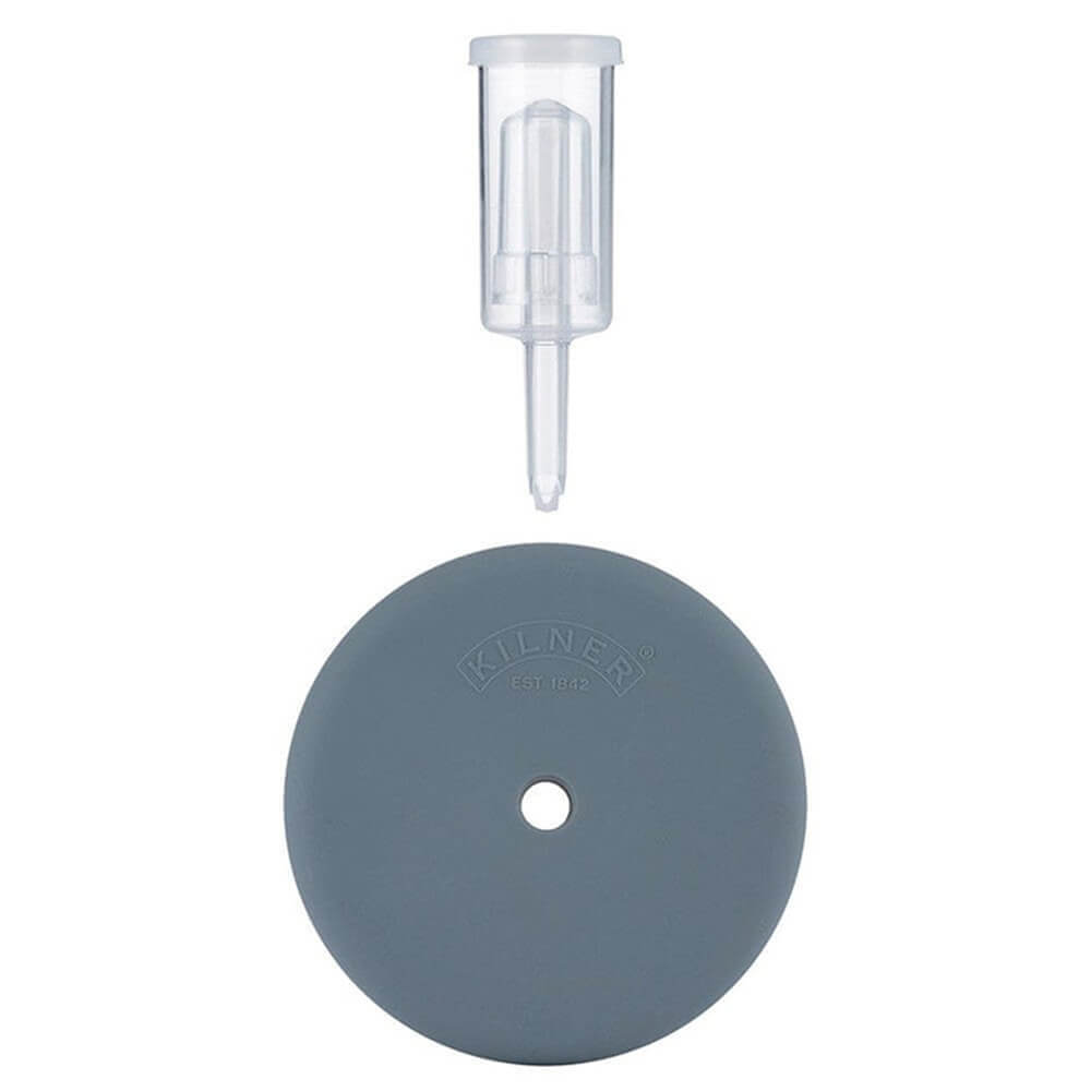 キルナー発酵セット3L。この発酵セットは、大きな3リットルのガラス瓶、塩水の下に発酵を維持するためのエアロックとセラミックウェイトを備えた柔らかいシリコンの蓋を特徴としています。独自のザワークラウト、キムチ、ピクルスなどを作りましょう。 1つの3Lジャー。