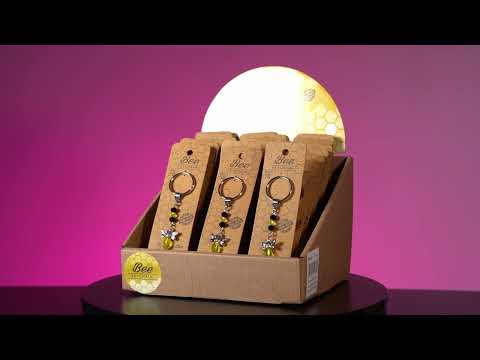 • 黒と黄色のビーズを備えた銀のチェーンに黄色の宝石のミツバチが特徴です