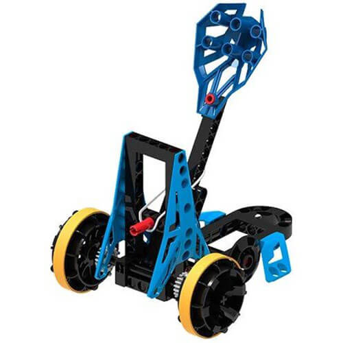 5つの素晴らしいマシンを作り、力、動き、エネルギーの物理学について学びます。床を横切ってズームを拡大するラバーバンド駆動のレースカーを構築します。