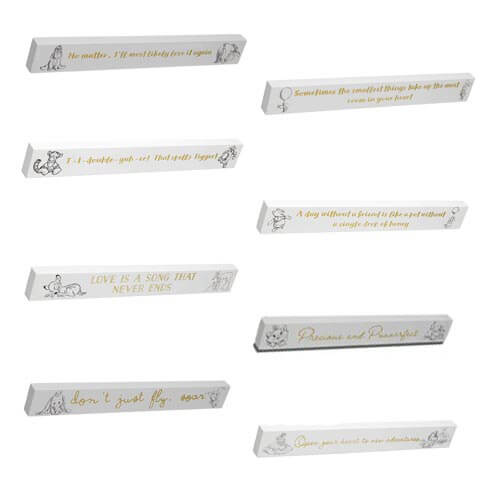 この収集可能なバンビデスクプラークを使用して、あらゆるスペースにディズニーの知恵の言葉を持ってきてください。この魅力的な白い40cmのプラークには、バンビと金の箔の引用/感情のイラストが特徴です。キャプションの読み取り:愛は終わらない曲です。