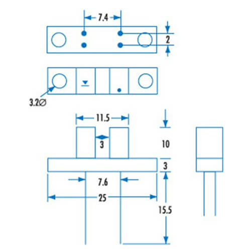 このデバイスを使用すると、回路を光学的にオンとオフにすることができます。これは、ギャップを横切ってフォトトランスリスターに面したIR LEDがある成形プラスチックハウジングで構成されています。ギャップ内のすべてのオブジェクトはIRビームを中断し、その結果、フォトトランジスタをオンとオフに切り替えます。デバイスは非常に高速で、各ユニットで提供されるカウント、タイミング、センシングに最適です。