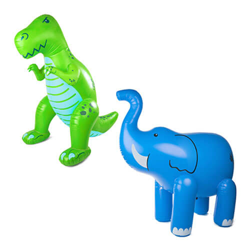 私たちも使用するのに非常にsimpleなものにしました。それを膨らませ、標準的な庭のホースを接続します。水と出来上がりをつけてください! - この恐竜の鼻から水が尖った円錐形のパターンで噴出します。
