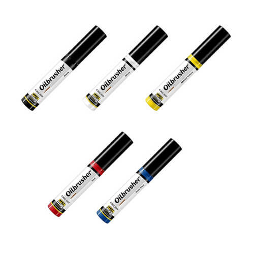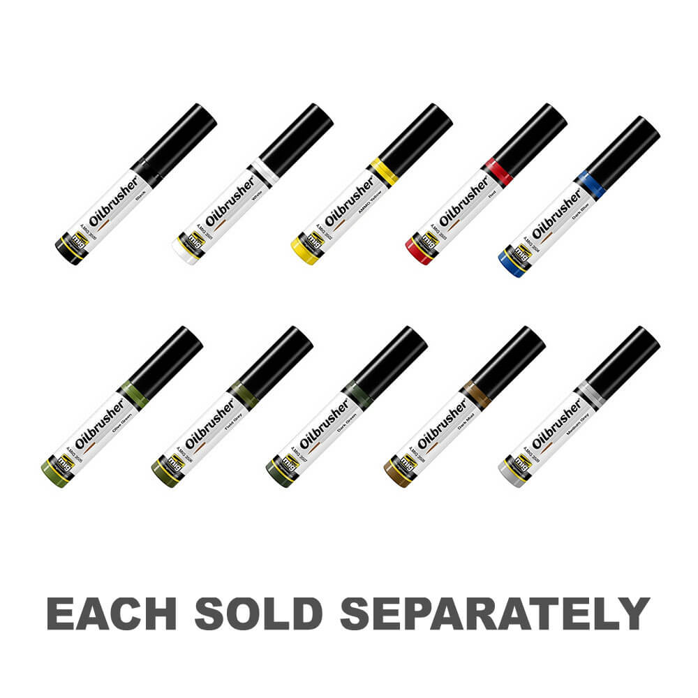 新しいオイルブルーシャーは、究極の革新的なモデリング製品です。オイルブルーシャーには、モデリングの使用専用に配合された高品質のオイルペイントが含まれており、瓶から直接適用される完全な一貫性に希釈されています。キャップには、パレットや段ボールの一部に油絵の具を置くことなく、色をモデルに直接適用するための排他的な内蔵の高精度ブラシがあります。この進化により、オイルが乾燥し、製品が不必要に消耗するのを防ぎます。さらに、最新の容器には、ブラシから余分な塗料を除去するディスペンサークリーナーシステムが含まれており、先端にちょうど適切な量を残します。従来の油絵の具は乱雑で、油絵の下がキャップの周りを乾燥させて詰まらせたときに開けるのが困難でした。これはオイルブルーシャーでは起こりません、それは常に清潔で常に安定しています
