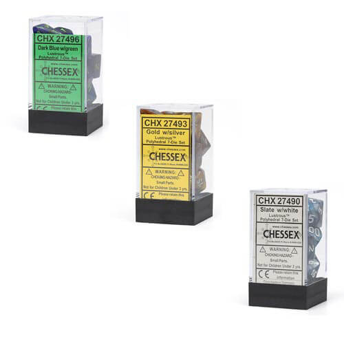 Signatur terninger er en samling av de mest solgte fargene på nye terninger som er utgitt de siste årene. Det inkluderer et bredt utvalg av farger og materialer, men hver er et unikt og interessant tillegg til enhver terningsamling. Dette settet inneholder en D20, en D12, to D10 (00-90 og 0-9), en D8, en D6 og en D4.
