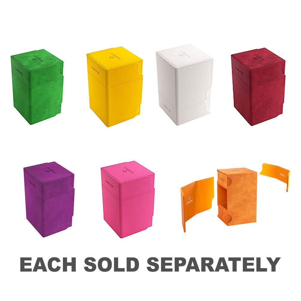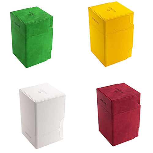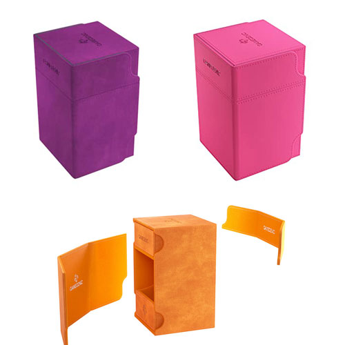 Convertible Watchtower kombinerer dekkboks, tilbehørsskuff og kortholder i en elegant boks. Kortholderen kan holde opptil 100 dobbeltmakort, beskyttet av mykt indre mikrofiberfor. Tilbehørskuffen er perfekt for å huse terninger, symboler og andre små gjenstander.