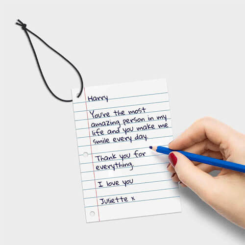 Skriv dem et brev som får dem til å smile og føle seg elsket på hver bilreise. Spray med ditt valg av parfyme, köln eller essensielle oljer og tilpasse med en personlig melding for å vise dem hvor mye du elsker og bryr deg om dem. En personlig gave som de vil verne om. Laget av bomullspapir. Fri for plast og alle de harde kjemikaliene som vanligvis finnes i luftfriskere.