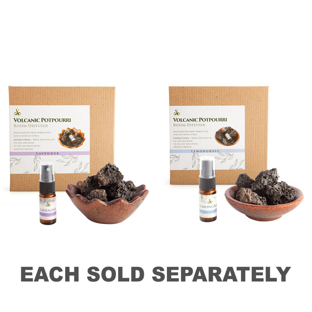 - Inkluderer Terracotta Bowl, Volcanic Stones, Black DrowString Bag & Lemongress Essential Oil.