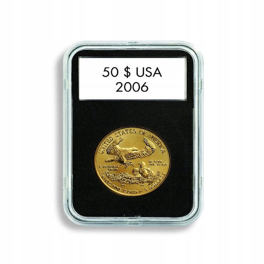 - Pakiet 5 kapsułek monety QuickSlab do tworzenia niestandardowych wyświetlaczy monet.
