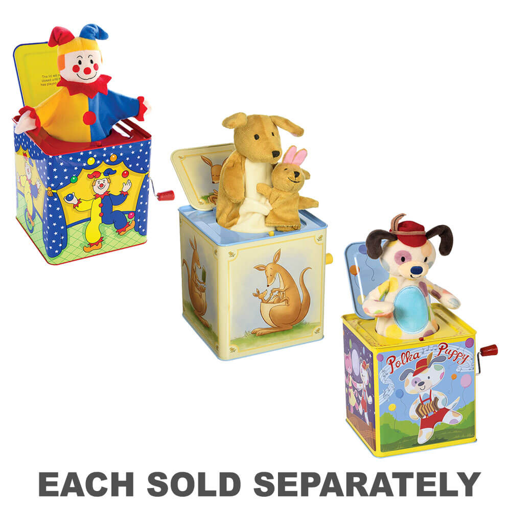 Polka Puppy Jack w pudełku to wyjątkowa zabawka z Schylling Toys, światowego lidera w tradycyjnych zabawkach i klasycznej zabawy. Polka szczeniak wygląda jak zwykły gniazdo w pudełku, ale ukryty w środku jest sekretem. Obróć uchwyt i usłysz: „Pop idzie łasica”, aż szczeniak wyskoczy. Ale potem odwracaj uchwyt, a on tańczy do muzyki! To zachwycająca niespodzianka. Dla dziecka, które może być zaskoczone przez pop, szczeniak może tańczyć z otwartej pozycji, eliminując potencjalny strach. Polka szczeniak jest pięknie ozdobiony wytłoczonym blaszanym pudełkiem z zachwycającymi ilustracjami.