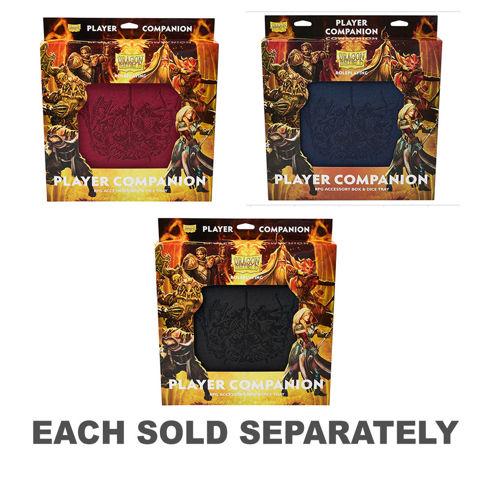 De Dragon Shield Player Companion is een twee-in-één opbergdoos en gameplay-gebied voor spelers van Tabletop RPG's. Gebruik de speler -metgezel om dobbelstenen, miniaturen, pennen/potloden, karakterbladen en een RPG -boek of twee in te pakken! Neem alles wat je nodig hebt om te gaan Dungeon Delving in One Handy Companion.
