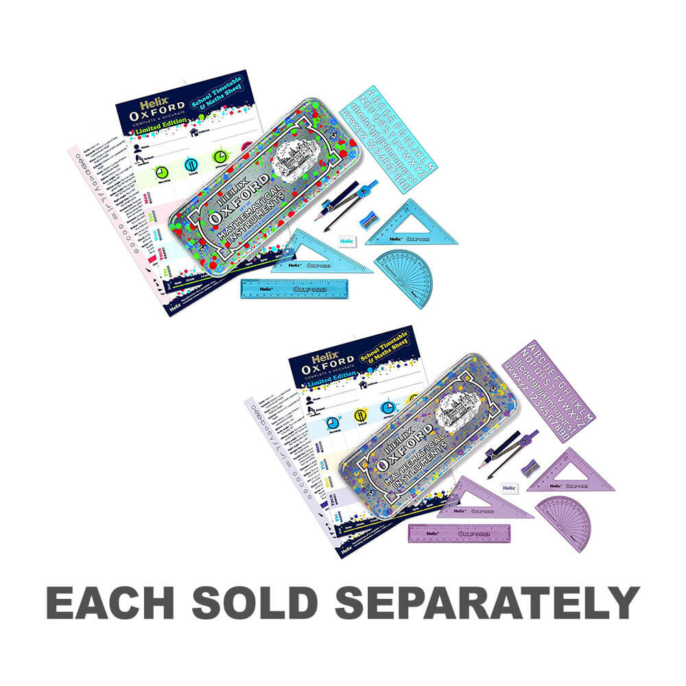 De Helix Oxford Blue 9 -delige wiskundetet is een handige manier om uw wiskundevoorzieningen voor school in te slaan. Het wordt geleverd met een assortiment wiskundehulpmiddelen om je klaswerk te voltooien plus enkele briefpapier en een duurzaam blik om het allemaal bij elkaar op te slaan.