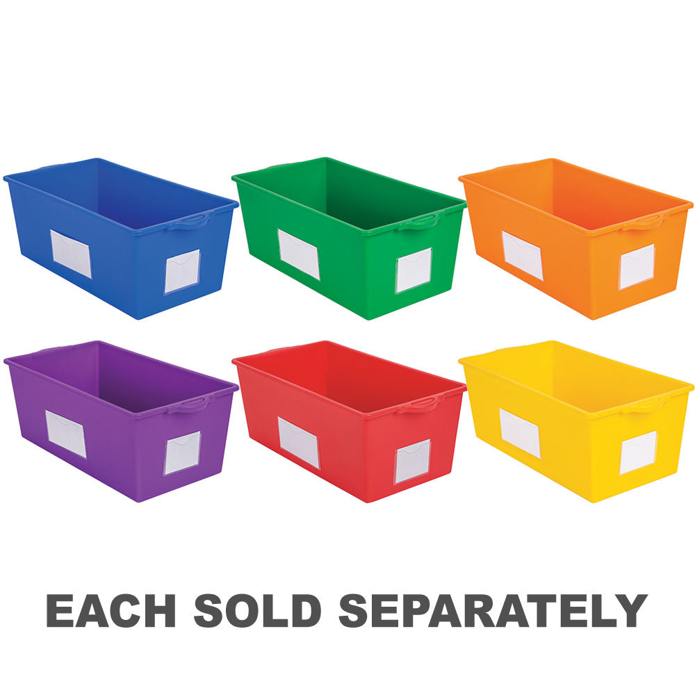 Keep your classroom or home library organised with the Help Yourself Book Bin, designed for flexible and efficient book storage. These adaptable bins can be positioned in two ways-one orientation provides ample space for larger picture books, while flipping them around creates the perfect fit for smaller paperbacks. The open, easy-access design allows children to browse books effortlessly, making it simple to find the title they want and encouraging a love of reading. Each bin comes with handy labels for even better organisation, ensuring books are always neatly categorised and easy to locate. Crafted from durable plastic, these bins are built to withstand daily classroom use while keeping your reading space tidy and efficient.