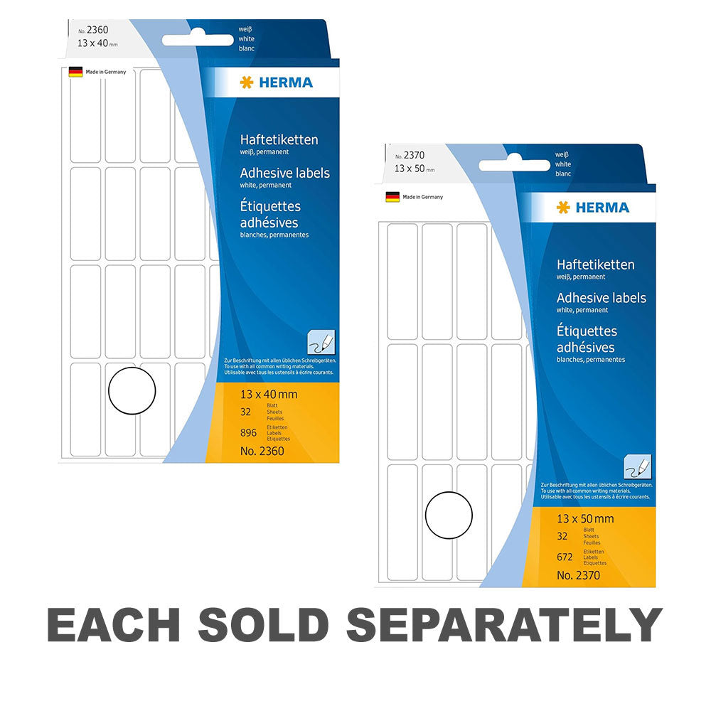 Streamline your labeling tasks with Herma Multi-Purpose Adhesive Labels! This pack includes labels in white, each measuring 13mm in diameter, offering versatility for a variety of applications such as organizing, filing, or creative projects. With a strong adhesive backing, these labels adhere securely to various surfaces, ensuring clear and professional labeling. Whether for small item labeling, marking, or crafting, these multi-purpose adhesive labels provide efficiency and convenience for all your labeling needs. Get ready to label with precision using Herma Multi-Purpose Adhesive Labels in 13mm!