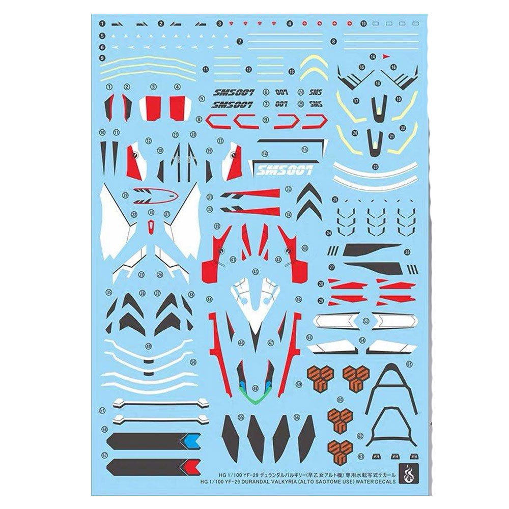 De YF-29 Durandal Valkyrie gevlogen door Alto Saotome in "Macross Frontier" is de nieuwste inzending in Bandai's HG "Macross" Model-Kit-line-up! Deze kit neemt de "snelkoppelingswijziging" aan, die de transformatievolgorde vereenvoudigt door vervangende onderdelen te gebruiken, terwijl het nog steeds volledig gebruik maakt van het gemak van montage en een breed bewegingsbereik dat uniek is voor de HG -serie. De kit reproduceert trouw de gebogen schoonheid van de voorwaartse vleugels in de jachtmodus en het karakteristieke silhouet in de Gerwalk -modus. De Battroid -modus drukt ook zijn karakteristieke scherpe lichaamslijn uit. De schouders hebben een uittrekbare gewricht voor een uitgebreid bewegingsbereik en een drieweg-bewegingsas in de borst zorgt voor een breed bewegingsbereik aan de voorkant, achterkant en beide zijden. De raketluiken op de schouders en benen kunnen worden ingezet en het mes kan in het schild worden opgeslagen; Expressieve handonderdelen zijn ook inbegrepen