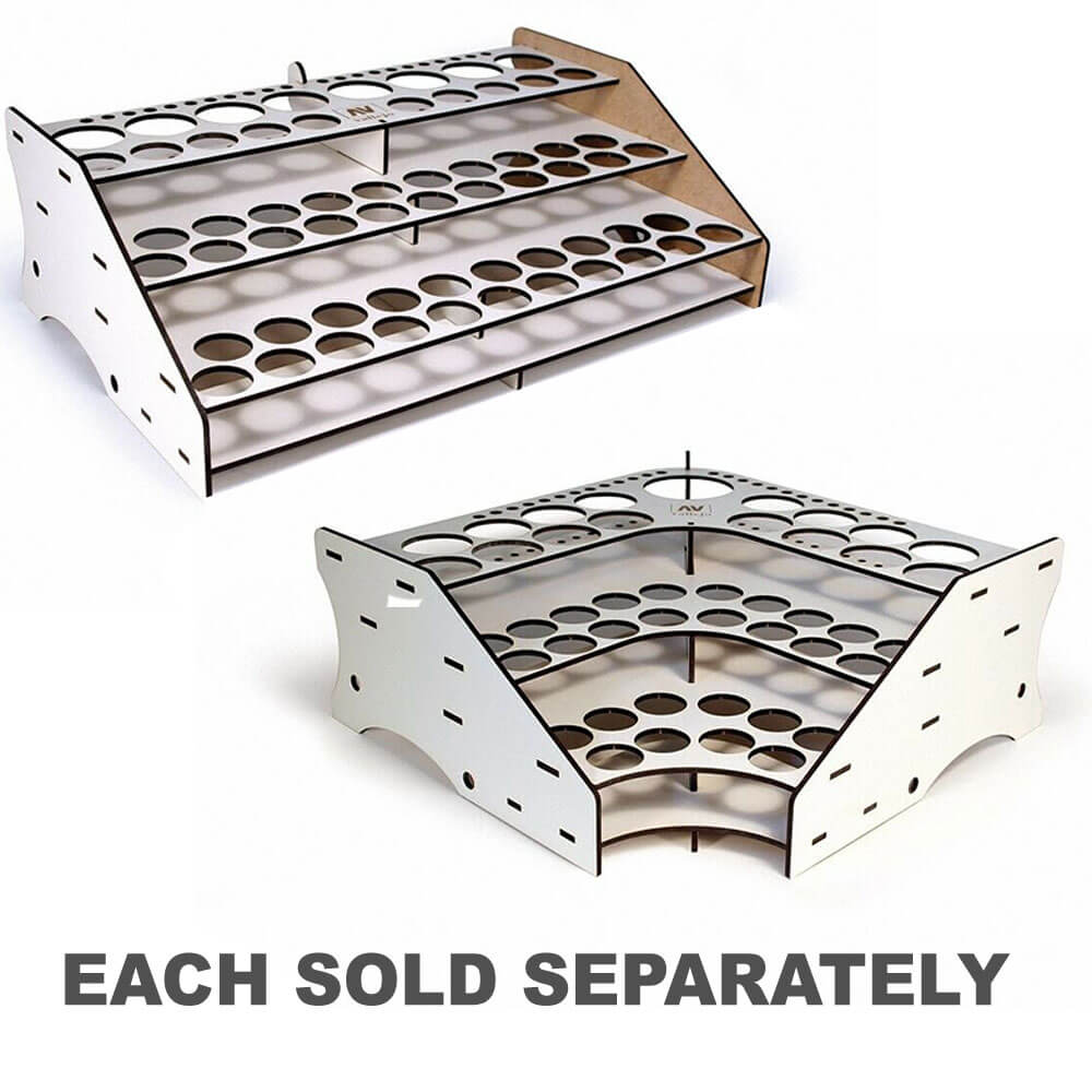 Paint Stand van de voorste model: de perfecte oplossing voor het opslaan van Vallejo -kleuren. Dit model heeft ruimte voor 52 flessen Vallejo -kleuren in 17 ml grootte, samen met 8 flessen van 35 ml/60 ml en 22 borstels. Gemakkelijke montage vereist geen lijm.