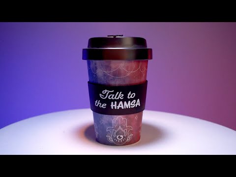 - Combinando a tampa preta anti-derramamento e a banda de silicone protetora com a frase punny 'conversa com o hamsa'.